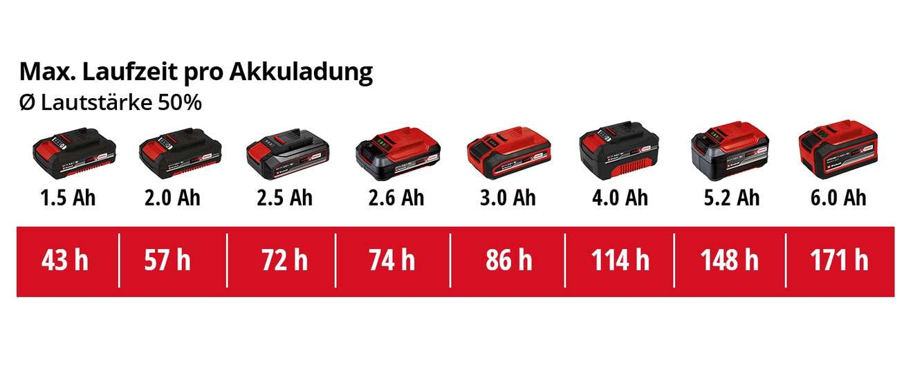 Nie mehr über Kabel stolpern, nie mehr nach Steckdosen suchen, nie mehr Ärger mit dem Verlängerungskabel: Der leistungsstarke Lithium-Ionen-Akku aus dem Power X-Change Akku-System von Einhell sorgt für kabellose Freiheit und ermöglicht auch einen Einsatz fernab jeder Steckdose. Für den Betrieb ist ein 18 V Power X-Change Akku notwendig. Dieser ist nicht im Lieferumfang enthalten, kann aber separat als Starterkit inklusive Ladegerät erworben werden.