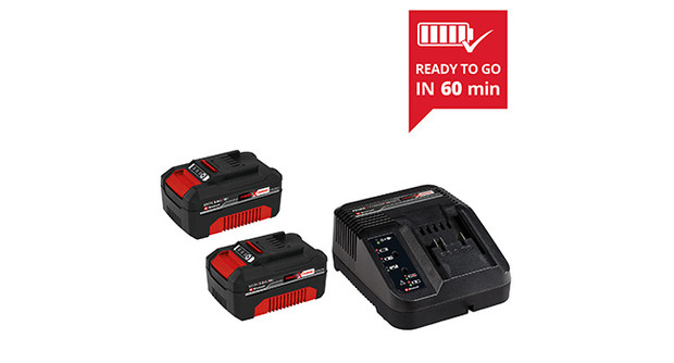 Das Einhell 18V 2x 3,0 Ah PXC Starter Kit ist die ideale Basis, um das heimische Power X-Change-Sortiment zu beginnen oder auszubauen. Das Starter Kit mit zwei 18V 3,0 Ah Power X-Change Akkus und Schnellladegerät gehört zum multifunktionalen und untereinander kombinierbaren Akkusystem Power X-Change von Einhell. Die universell einsetzbaren Power X-Change-Akkus versorgen alle Akkugeräte der gesamten Produktfamilie im Garten- und Werkstattbereich mit Kraft und Ausdauer. Auch die Ladegeräte der Reihe sind universell für alle PXC-Akkus verwendbar. Die Vorteile liegen auf der Hand: Mit einem Akku und einem Ladegerät für alle Geräte spart man nicht nur bei der Anschaffung Kosten, die universelle Einsatzmöglichkeit schont die Umwelt und bietet gleichzeitig Flexibilität in Haus und Garten. Auch gibt es kein Chaos durch unterschiedlichste Akkus und Ladegeräte. Für die Nutzung von 36 Volt (2x 18 Volt) Geräten, höhere Power und längere ununterbrochene Arbeitszeit sorgen die zwei im Lieferumfang enthaltenen Akkus. Die hochwertigen Akkus wiederstehen Memory-Effekt und batterieüblicher Selbstentladung für konstante, hohe Power. Der 18V 3,0 Ah Power X-Change ist der ideale Basis-Akku der Power X-Change-Familie und geeignet für den TWIN-PACK Einsatz bei 36V-Anwendungen. Das prozessgesteuerte, aktive Batteriemanagementsystem ABS überwacht mithilfe des eingesetzten Mikroprozessors stetig die Parameter des Akkus. Dadurch sorgt es für höchste Sicherheit, optimale Geräteperformance, maximale Laufzeit und Lebensdauer. Der aktuelle Ladezustand kann durch eine 3-stufige LED-Anzeige kontrolliert werden. Das Gehäuse widersteht aufgrund der Bauweise Staub, Korrosion und mechanischen Einflüssen. Die Gummierung verleiht dem Akku hohen Stoßschutz und eine gute Griffigkeit. Mithilfe der Griffmulde kann der Akku wieder leicht aus allen Geräten entfernt werden. Das Schnellladegerät ist kompakt designt und braucht damit nur wenig Platz, durch die integrierten Aufhängeösen kann das Ladegerät einfach an der Wand montiert werden. Durch die Schnellladetechnologie sind die Ladezeiten kurz, für den optimalen Ladevorgang und höchste Sicherheit wird der Akku vom intelligenten Lademanagement ständig überwacht. Durch den Refresh-Modus ist die Reaktivierung tiefentladener Akkus möglich. Alle Informationen werden durch die die 6-fache Zustands-LED-Anzeige bereitgestellt.